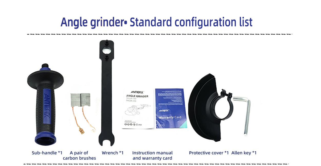 Sub-handle,Carbon brush ,Wrench,Manual& card,Protective cover,Warranty card