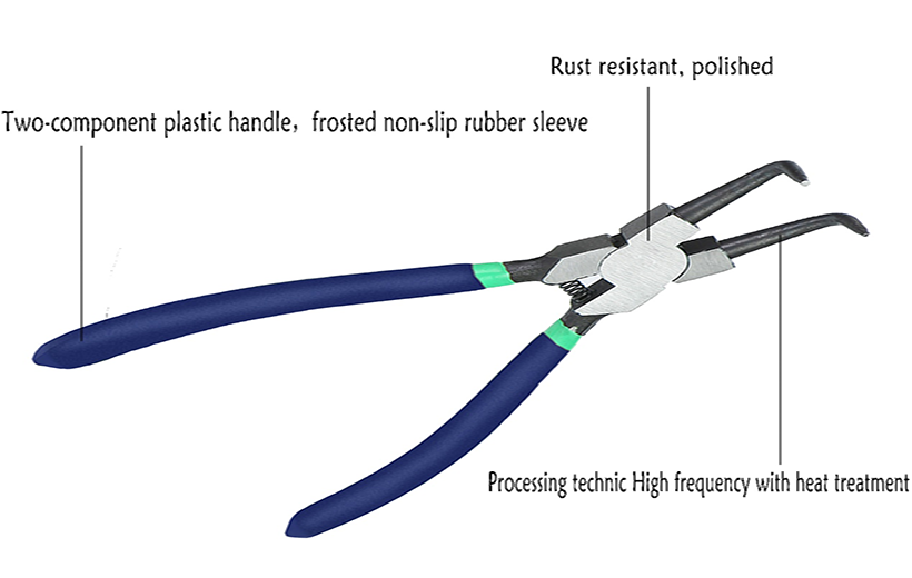 ANTIEFIX Hand Tools High Quality 7" 45# Carbon steel + TPR double color handle Circlip plier internal bent jaw